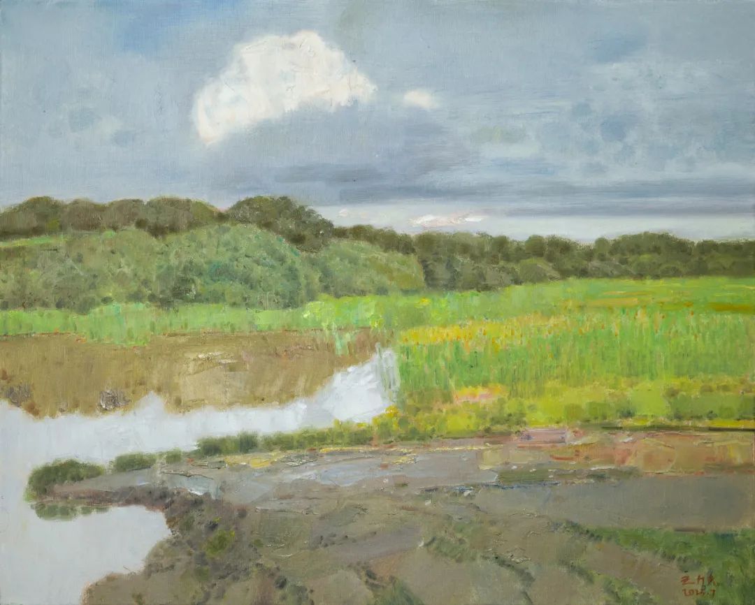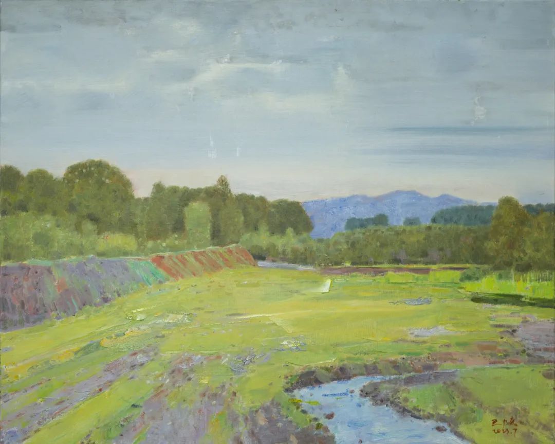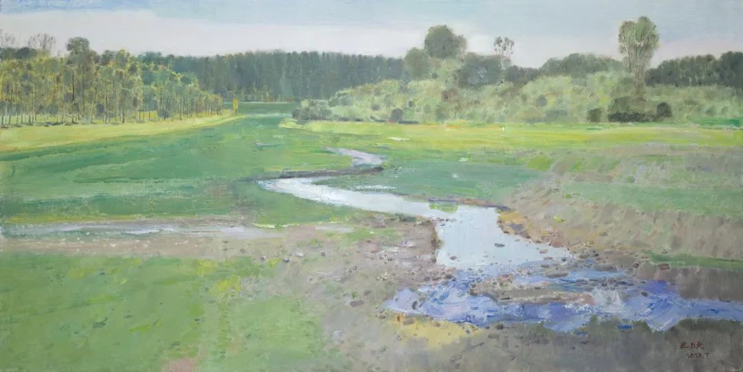 《右玉·雨后的小河湾》80cm×100cm布面油画2023年