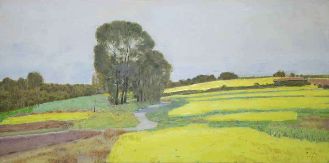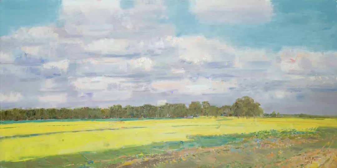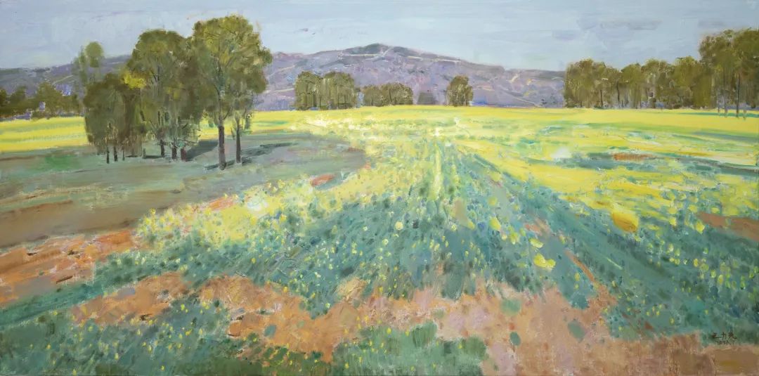 《右玉·北岭梁的油菜花》80cm×160cm布面油画2023年