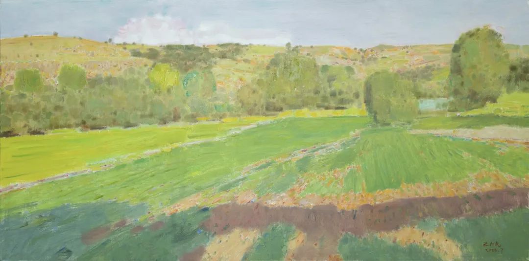 《右玉·北岭梁的小树林》80cm×160cm布面油画2023年